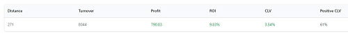 Перенес данные из bet history (у меня там, правда получилось 790 матчей), если смотреть единицы профита, то по ним РОИ 2,96%, РОИ по линии закрытия 0,26%