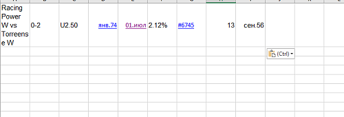 Со страницы Bet History я попробовал столбец выделить чтобы скопировать, вроде не получается - только полностью строку. Когда ее вставляешь в таблицу - там ссылки на страницу не кэфы копируются, как это оптимально сделать? я бы попробовал у себя.