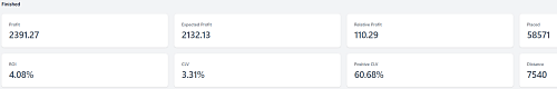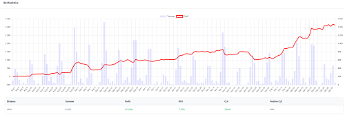 у меня текущий месяц вроде и слв неплох и позитив слв. Но ставок очень мало. Дисперсия видимо. Или обманчив слв. Так как есть несколько ставок с 100+ слв. На такой объем ставок это очень сильно влияет на среднее значение