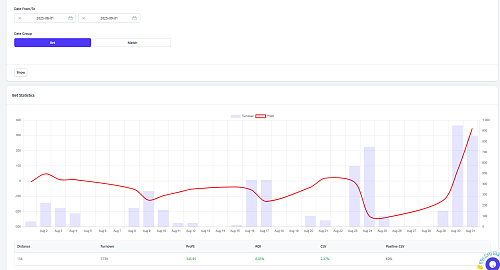 Также, судя по этому скриншоту, ты ставишь по 20–25 евро на ставку. Советую снизить до минимальной суммы в 5 евро, пока не получишь нормальный CLV и Positive CLV не на архиве, а на реальных ставках. Чем больше разница между CLV и Positive CLV в архиве и в реальных ставках, тем меньше логики и больше подгона под исторические данные в стратегиях.